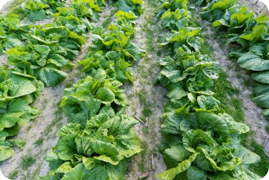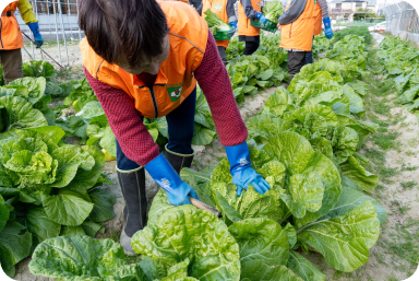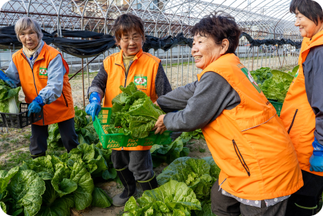 白菜やキャベツ、ブロッコリー、カリフラワーをはじめ、八事五寸人参、大根など、季節に応じた多品目の野菜を栽培しています。